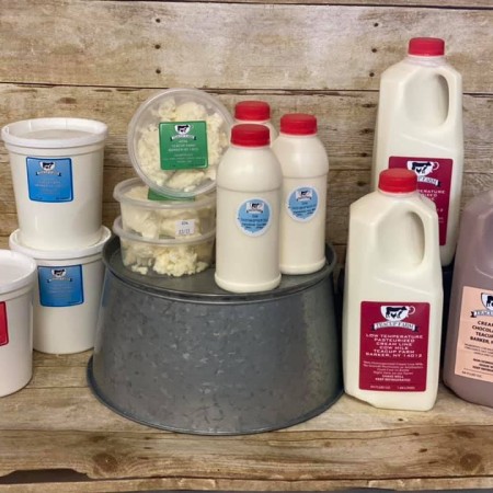 Our goal as a small family owned business has always been to support and carry products in our farm market from other local businesses. These dairy products come from Teacup Farm in Barker NY. They provide non-homogenized cream line milk with no growth hormones or antibiotics. Along with this milk they carry other dairy products such as plain and maple yogurt, heavy cream, and feta cheese. You can find these dairy products in our farm market cooler.